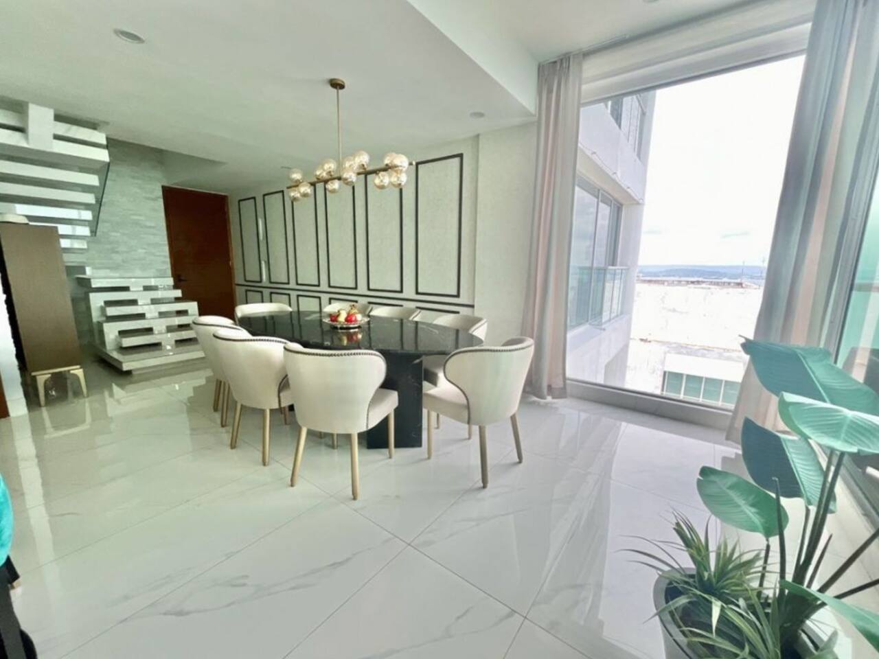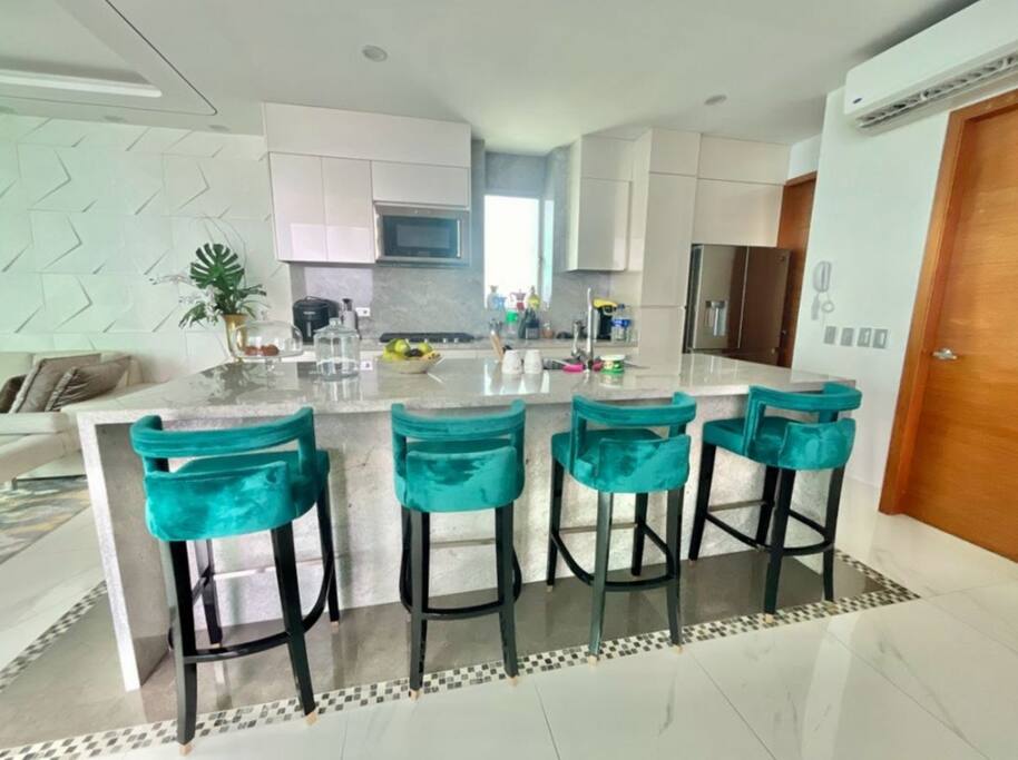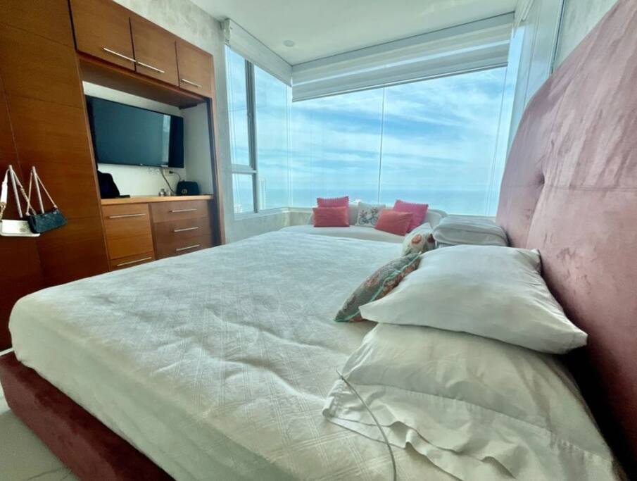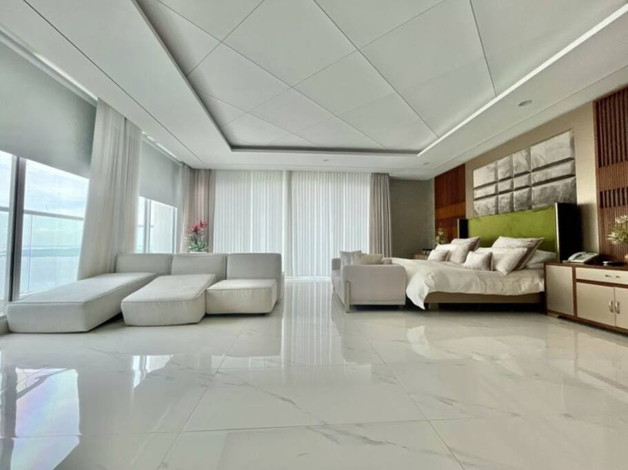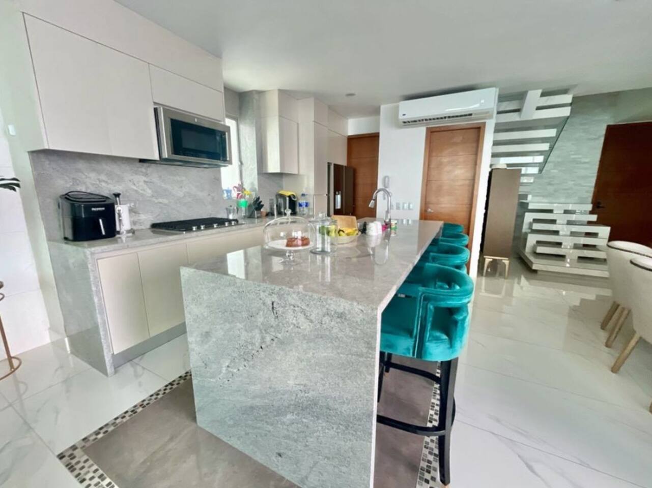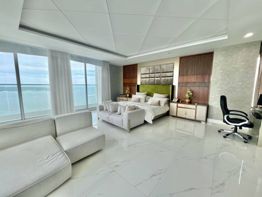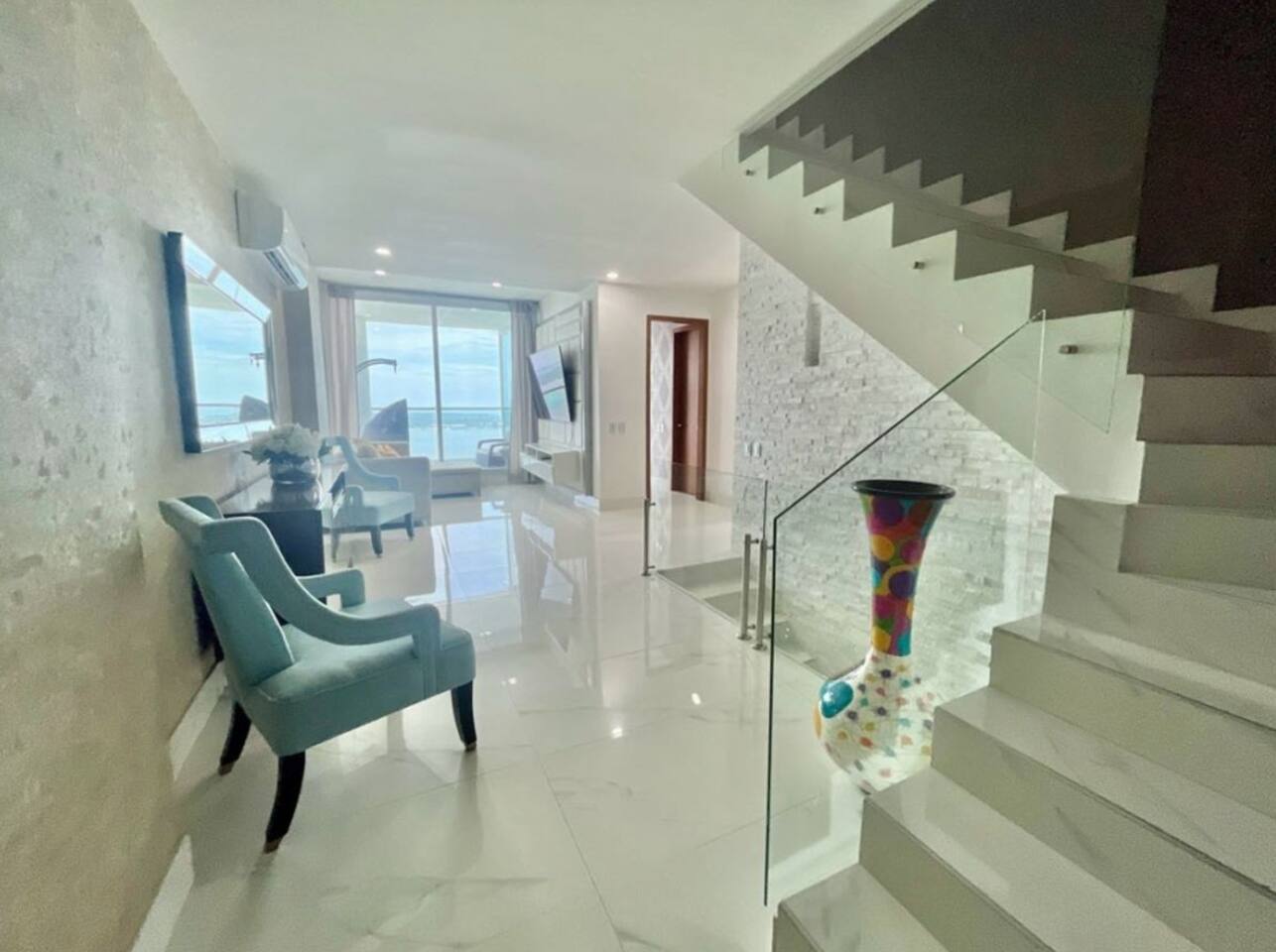 Beautiful 2-floor penthouse located in one of the best areas of Cartagena: Bocagrande. Known for it's luxurious residential high-rise buildings and beaches from all angles, this apartment is one-of-a-kind. Spanning over 2,600sqft (260m2) with 3 private balconies, Turkish spa bathrooms, smart TVs, built-in audio system and 4 large bedrooms. The master bedroom is over 600 square feet. Walking distance to the beach, 10 minutes from the Old City and 20 minutes from the Airport.