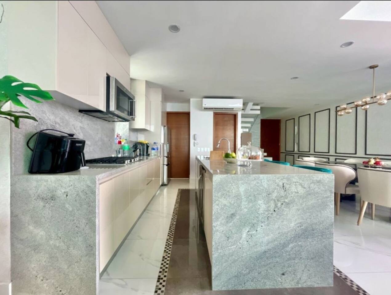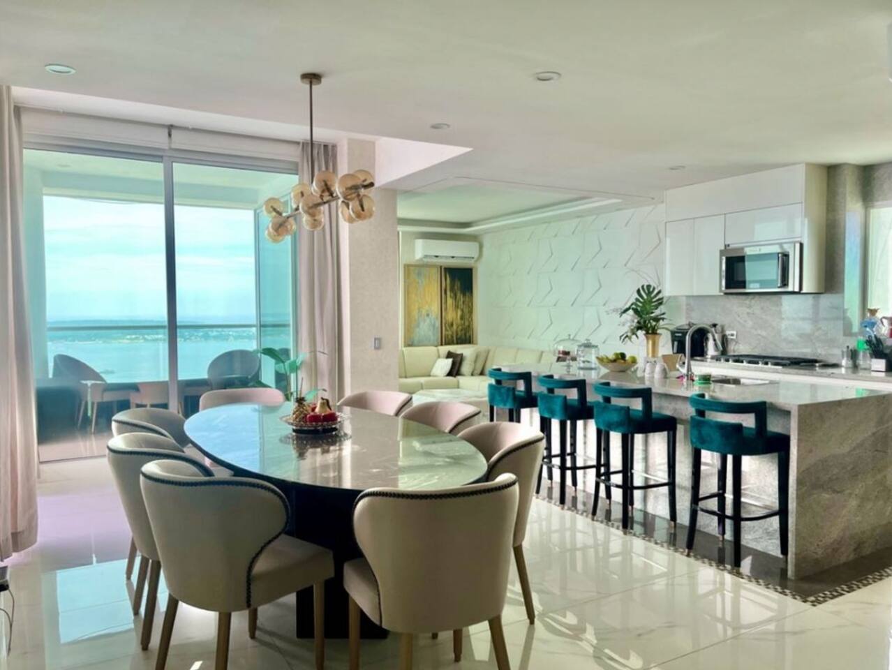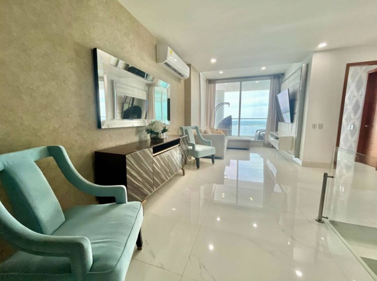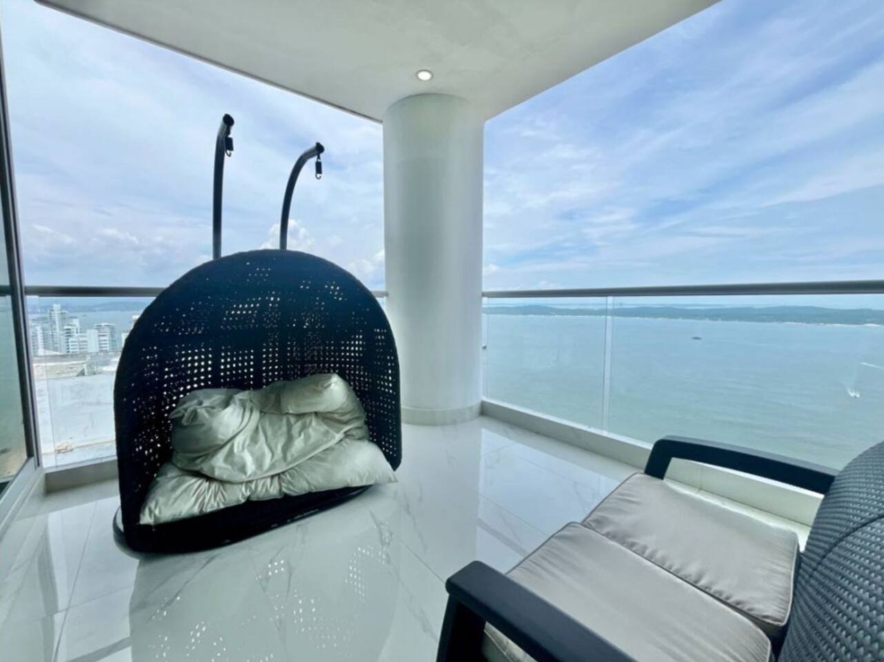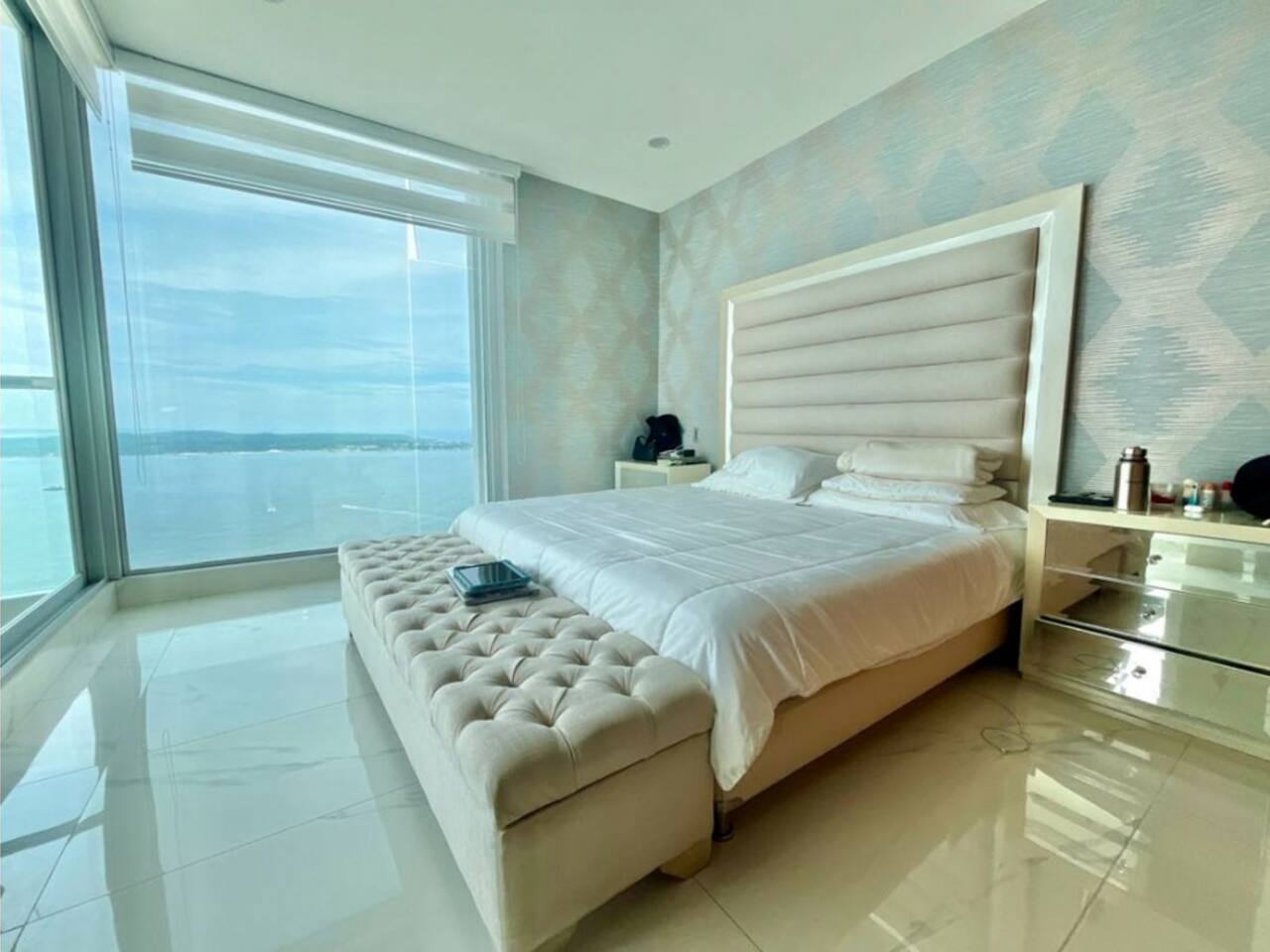 Beautiful 2-floor penthouse located in one of the best areas of Cartagena: Bocagrande. Known for it's luxurious residential high-rise buildings and beaches from all angles, this apartment is one-of-a-kind. Spanning over 2,600sqft (260m2) with 3 private balconies, Turkish spa bathrooms, smart TVs, built-in audio system and 4 large bedrooms. The master bedroom is over 600 square feet. Walking distance to the beach, 10 minutes from the Old City and 20 minutes from the Airport.